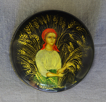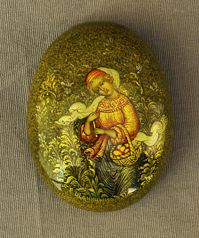 Шкатулка Девушка в поле - миниатюра (6 см) (Папье-Маше)