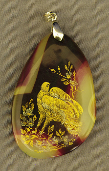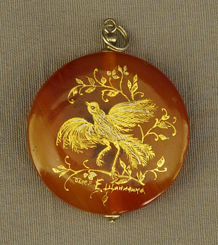Кулон из камня с птичкой - Палехская миниатюра (4,5 см)