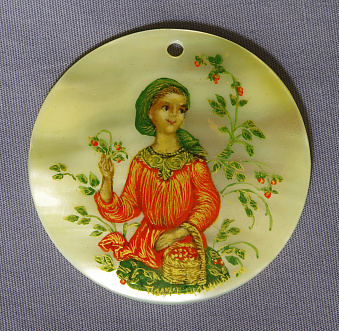 Брошь Девушка с корзинкой - миниатюра (5*5) (Перламутр)