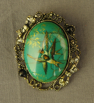 Брошка из зеленного камня с птицами - миниатюра (3,5 см)